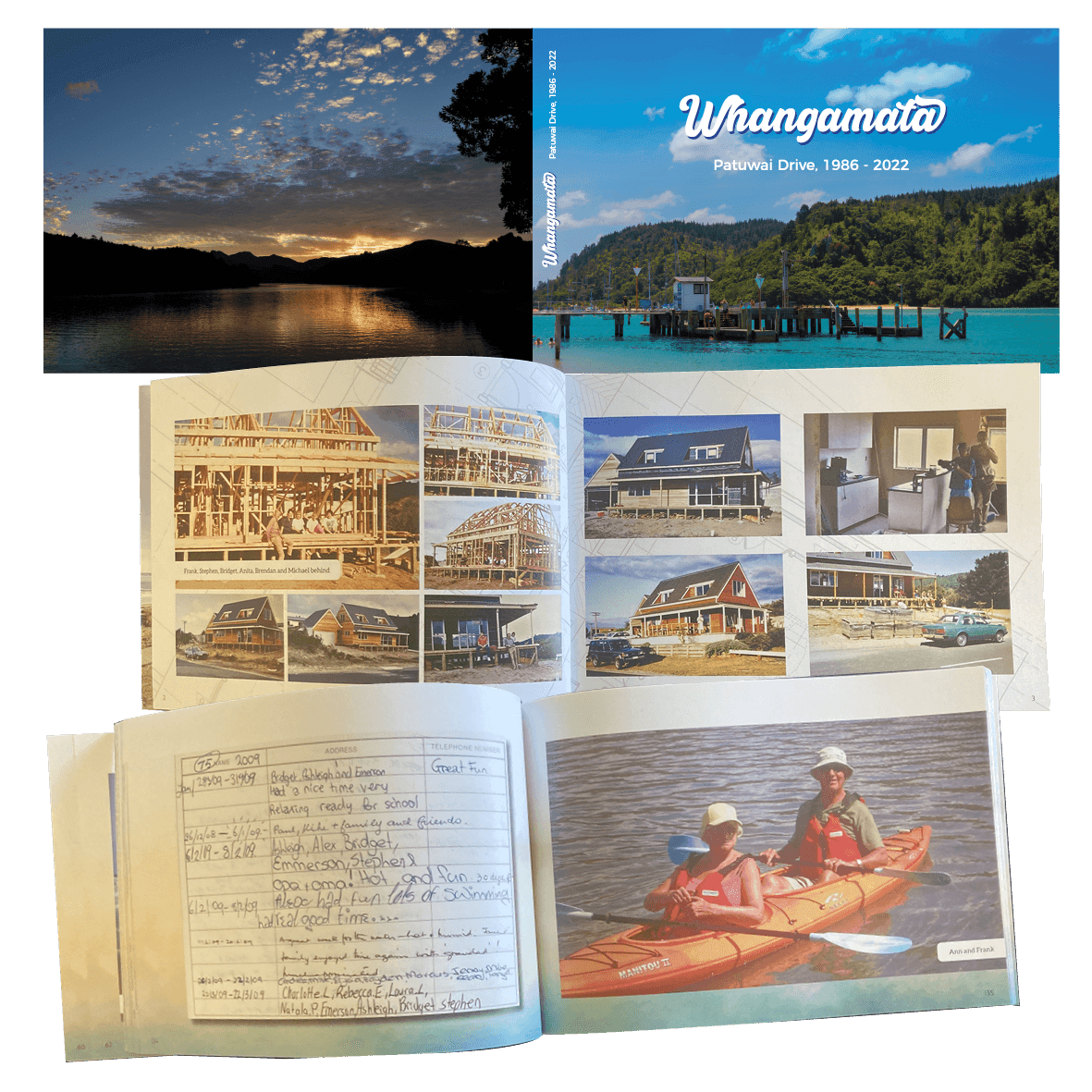 I thoroughly enjoyed working with Frank and Ann Overwater on their life stories. A couple of years later, Frank approached me to help him produce another book. The second book celebrated thirty-six years of owning a family bach in Whangamata. Using a combination of photos and pages from visitor books, the story is told about how Frank built the first bach in 1986, the children, and then grandchildren who passed through, and the friends and family members who treasured their visits to Whangamata. - Samantha Cutler, Life Story Writer - May 2023